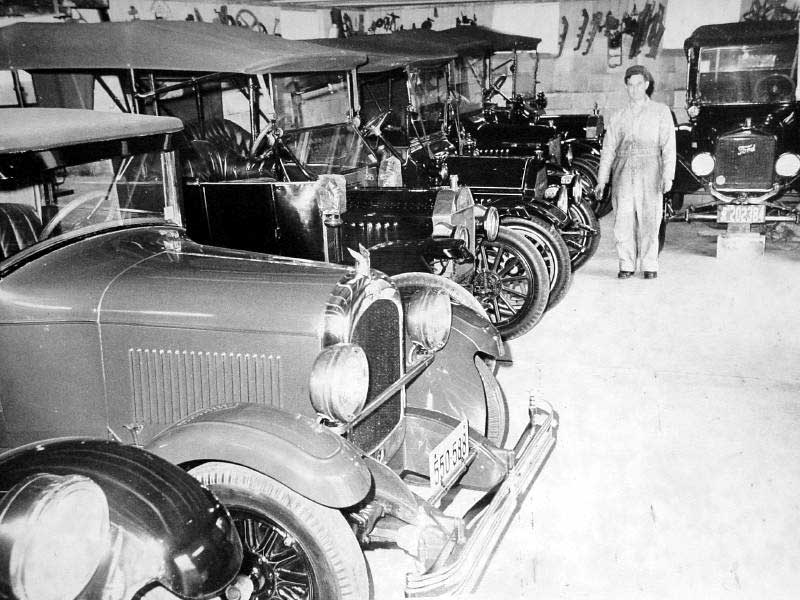 Many of the cars in this photo are no longer in the collection, but the car he is standing in front of, the